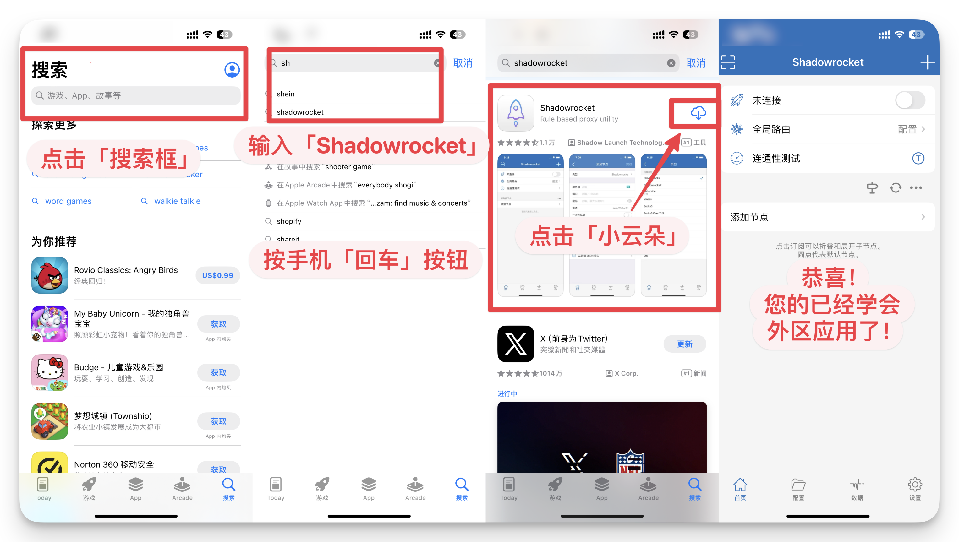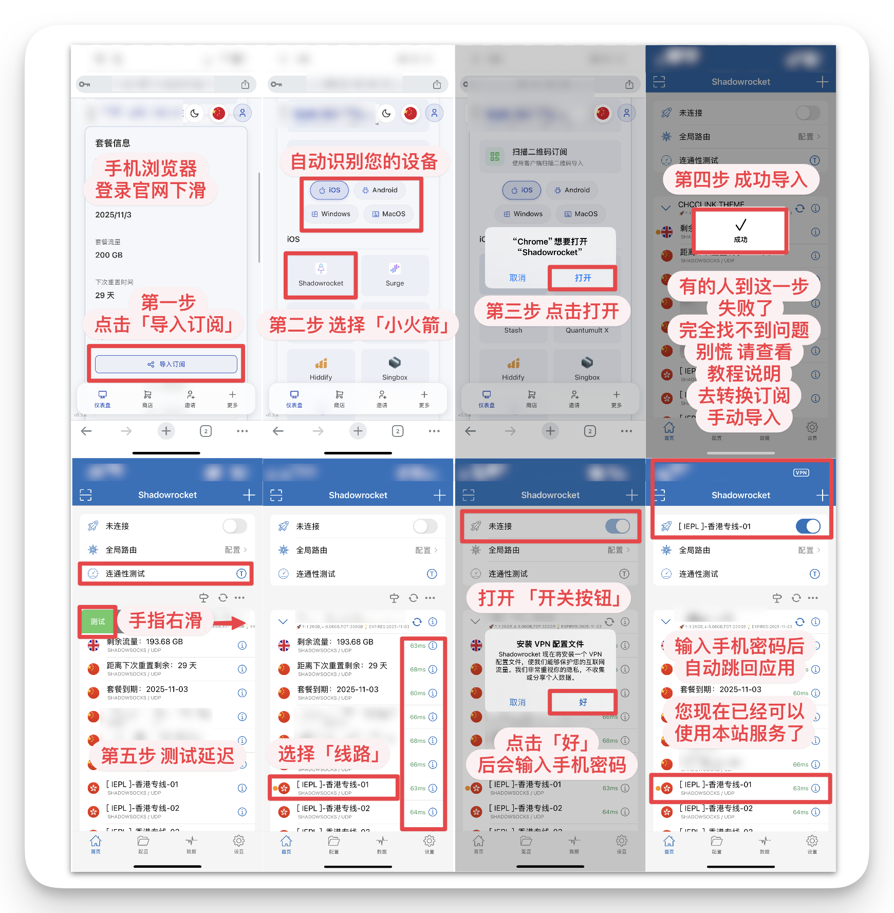 Shadowrocket 下载及使用教程 请您认真阅读以下教程并按步骤操作 下载安装 > 注册激活 > 软件使用