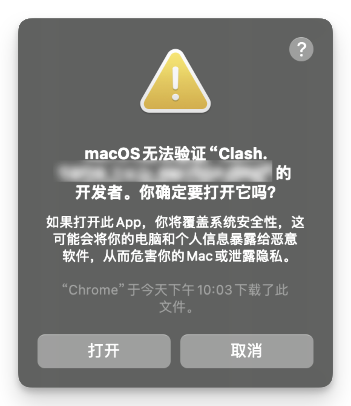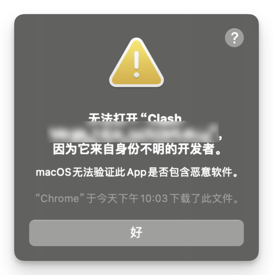 ⚠️ 如您下载后无法按照下图所示打开软件 请前往 「MacOS 签名教程」 按照步骤,对应用签名后使用在 macOS 10.15 发布后,苹果进一步提升了系统的安全性,加强了软件的安全性验证过程。