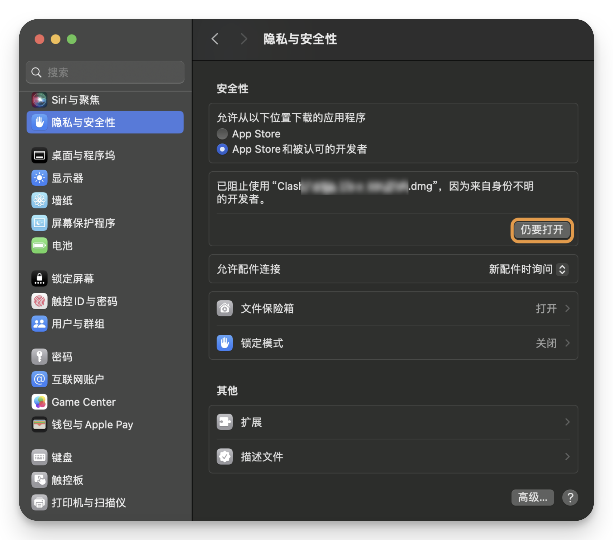 这导致许多用户在升级后,发现部分第三方软件无法打开,并收到诸如“XXX已损坏,无法打开”或“无法验证开发者”等提示,请按提示操作。