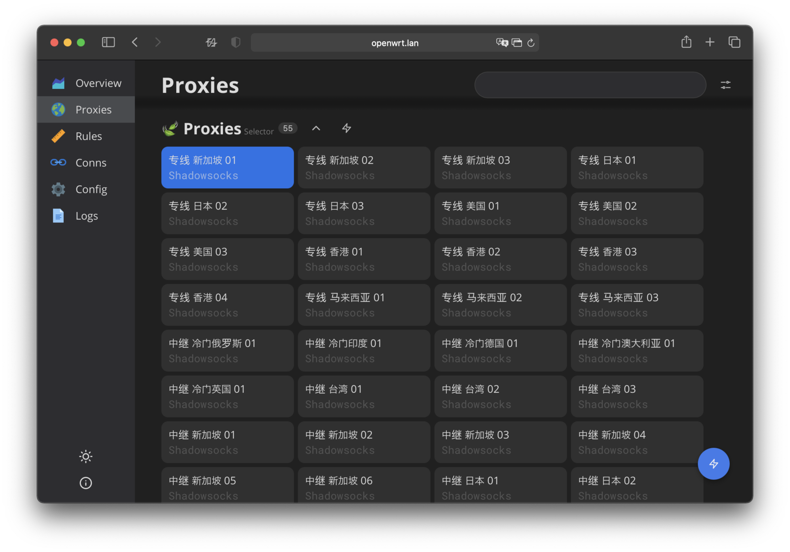 OpenClash 是 Clash 在通用 Openwrt 平台下的一个图形化分支。